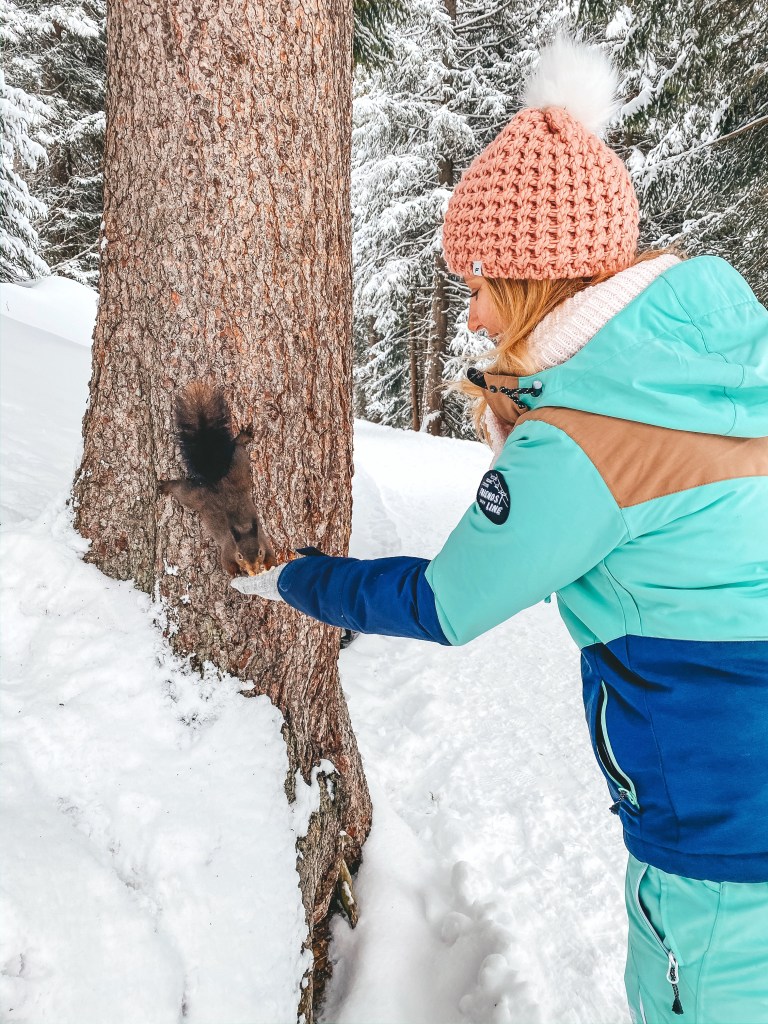 Und das Highlight: man kann direkt hinter dem Hotel mit etwas Glück Eichhörnchen füttern!!!