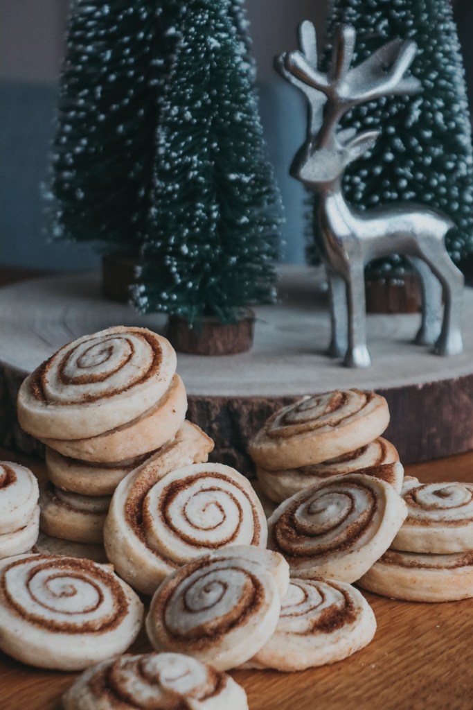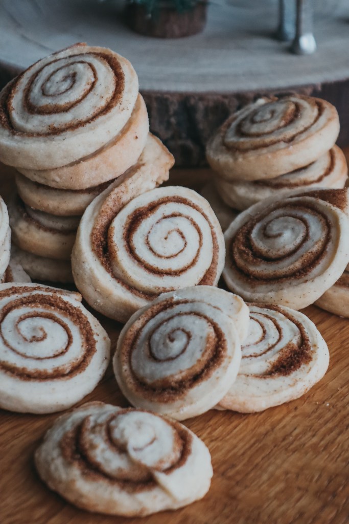 Zuerst die Vanille mit der Trockenhefe vermischen. Ebenso den braunen Zucker mit dem Zimt vermischen und beiseite stellen. Die Butter schaumig schlagen und den Frischkäse zusammen mit der Vanille, der Hefe und dem Zucker vermischen. Die Prise Salz dazu geben und langsam mit dem Mehl zu einem Teig verarbeiten. Den Teig zu einer Kugel formen und für 1 Stunde kühl stellen. Nun den Ofen auf 180 Grad Ober- und Unterhitze vorheizen und die Hälfte des Teiges auf bemehlter Fläche ausrollen und mit der Hälfte der Zimt-Zucker-Mischung bestreuen. Den Teig aufrollen und die Teigrolle in Stücke schneiden. Für 10 Minuten im Ofen backen. Wer möchte kann nun noch den Puderzucker mit der Milch verrühren und die Cookies in die Glasur dippen.