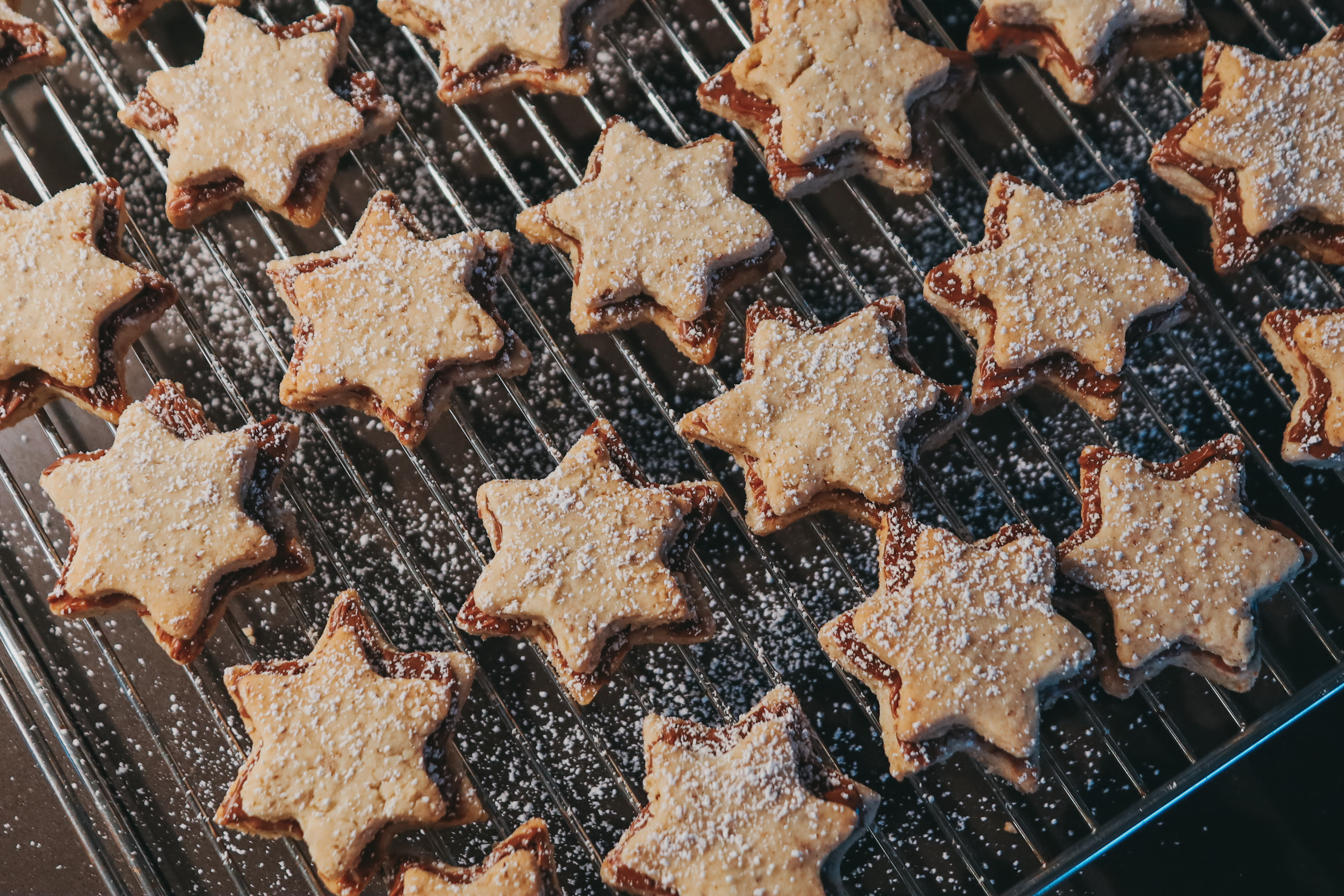 Mehl, Haselnüsse, Backpulver und Salz vermischen. Die Butter und den Zucker schaumig schlagen und anschließend die Vanille sowie das Ei mit der Butterzuckermischung verrühren. Dann langsam das Mehl dazu geben und zu einem gleichmäßigen Teig verarbeiten. Den Teig zu einer Kugel formen und eine Stunde kühl stellen. Nun den Backofen auf 180 Grad Ober- und Unterhitze vorheizen und ausrollen. Mit 2 unterschiedlichen Ausstechformen die gleiche Anzahl an Keksen ausstechen (am besten habt ihr sogar einen Linzer-Ausstecher, dann funktionieren die Kekse noch besser). Die Plätzchen anschließend ca. 10 Minuten backen und dann auskühlen lassen. Nougat im Wasserbad erwärmen und den größeren Keks mit dem Nougat bestreichen und direkt den kleineren Keks auflegen und andrücken. Nun noch ca. 1 Stunde trocknen lassen und mit Puderzucker bestäuben.